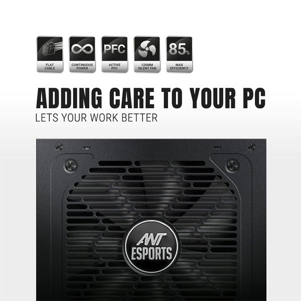 Equipped with active Power Factor Correction (PFC), the FG650 is engineered to effortlessly handle voltage fluctuations, ensuring uninterrupted performance in any power environment. Whether you’re engaged in marathon gaming sessions or tackling resource-intensive tasks, this PSU delivers continuous and reliable power. Plus, the integrated 120mm silent fan keeps your system cool without adding unwanted noise. Elevate your gaming setup with the Ant Esports FG650 and power up your gaming adventures like never before.