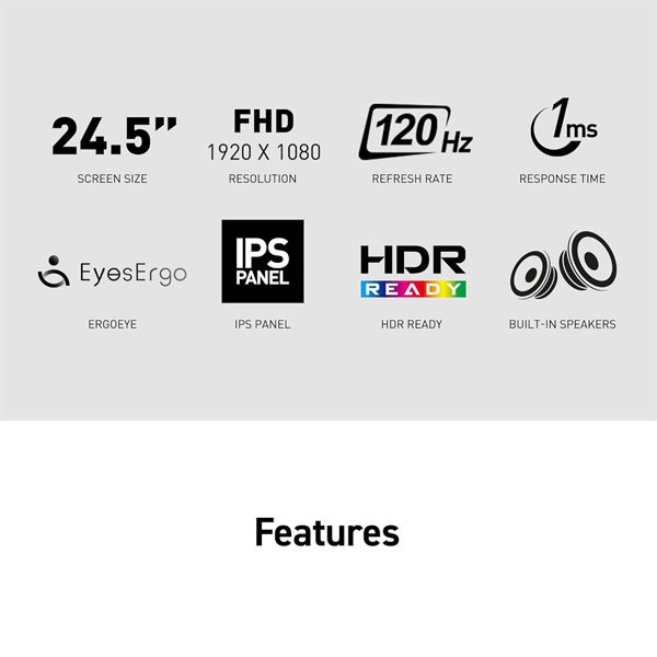 The 24.5-inch screen is the best size for most office and home use desks that optimally aligns with human visual focus, providing an immersive and ergonomic experience.